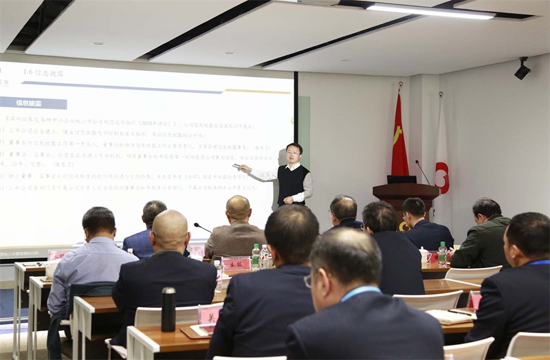 10月23日,哈爾濱三聯(lián)藥業(yè)股份有限公司上市后首次董監(jiān)高、各系統(tǒng)及全資子公司負責人培訓(xùn)大會在公司三樓黨建會議室舉行,特邀安信證券股份有限公司保薦代表人朱紹輝先生、北京德恒律師事務(wù)所曾國林律師,圍繞資本市場監(jiān)管要求、上市公司章程及已公告制度的重點內(nèi)容進行講解,哈三聯(lián)副總經(jīng)理兼董事會秘書趙慶福主持會議。
