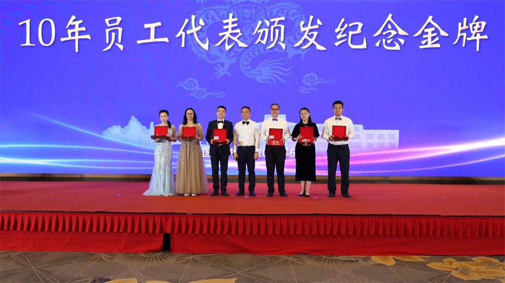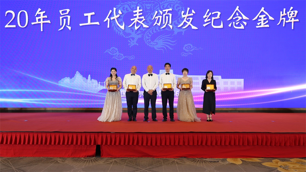 活動中,向在公司辛勤工作10年和20年的老員工代表頒發(fā)紀(jì)念金牌,以此感謝他們?yōu)楣景l(fā)展所作出的無私奉獻,并共同分享這份榮耀與喜悅。