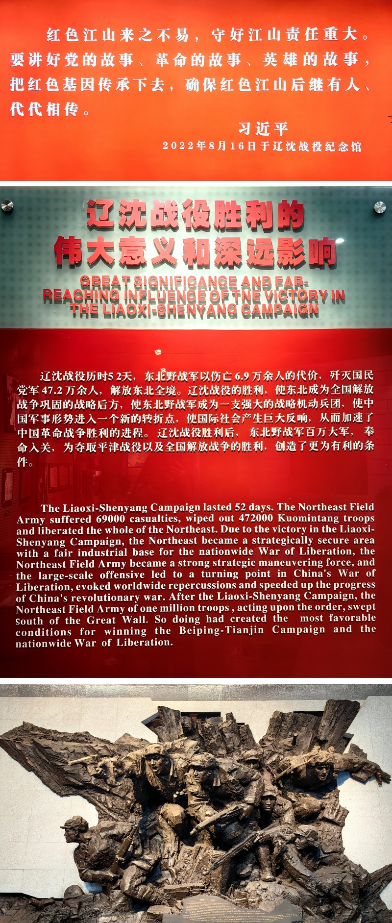在遼沈戰(zhàn)役紀(jì)念館,大家觀看紀(jì)念館內(nèi)一幅幅真實(shí)的圖片、一件件戰(zhàn)利品、戰(zhàn)士們的血衣遺書、莊嚴(yán)而肅穆的烈士名字碑刻,仿佛置身于硝煙彌漫的遼沈戰(zhàn)場,親身感受革命先烈不怕犧牲、浴血奮戰(zhàn)的感人場面。大家紛紛表示要緬懷革命先烈,賡續(xù)紅色血脈,在新時(shí)代中當(dāng)先鋒、作表率。