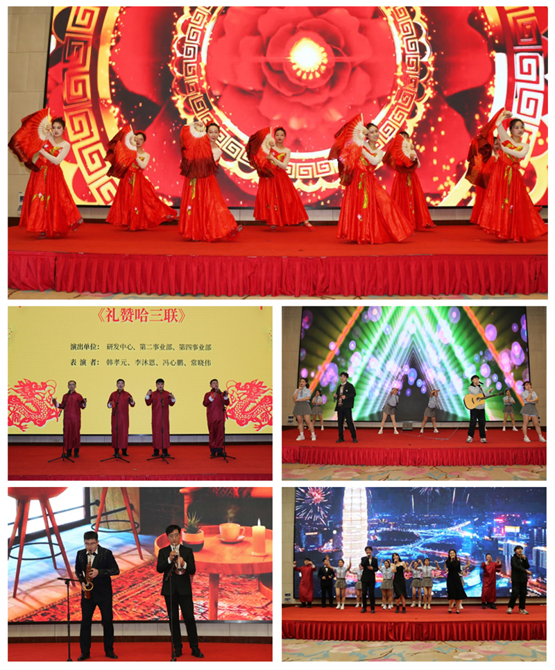 在2024年新春團拜會上,各部門的拜年短片拉開了新春序幕,廣大干部職工歡聚一堂、共迎佳節(jié),共同欣賞由工會組織、員工自編自演的舞蹈、男聲合唱、快板、小號與薩克斯樂器表演等文藝節(jié)目,現(xiàn)場氛圍喜慶祥和。