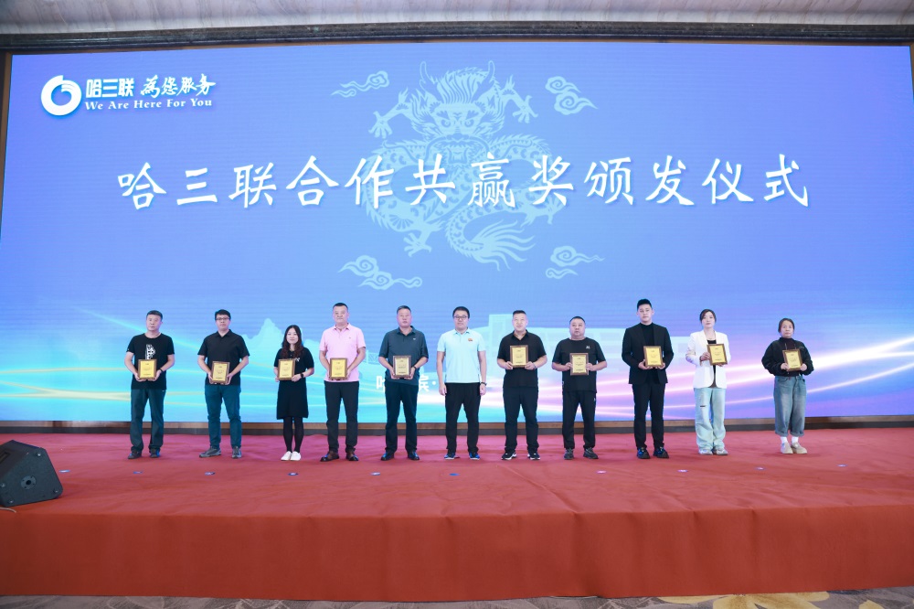 會(huì)議現(xiàn)場(chǎng),舉行哈三聯(lián)“合作共贏獎(jiǎng)”頒獎(jiǎng)儀式。該獎(jiǎng)項(xiàng)旨在表彰與公司建立長(zhǎng)期合作關(guān)系,并在過(guò)去一年合作中以“開(kāi)放、共贏”理念創(chuàng)造豐碩成果,在疫情時(shí)期患難與共的合作伙伴。