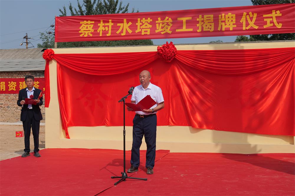 哈三聯(lián)董事長兼總裁秦劍飛代表哈三聯(lián)及哈三聯(lián)慈善基金會致辭。他強(qiáng)調(diào),蔡村是養(yǎng)育他的土地,在外多年,他始終銘記回報(bào)家鄉(xiāng)的責(zé)任與使命。此次捐資興建水塔,不僅是為了讓鄉(xiāng)鄰百姓能有安全、穩(wěn)定、潔凈的水源,更是為了表達(dá)在外創(chuàng)業(yè)者對家鄉(xiāng)的深情厚誼,希望未來家鄉(xiāng)能更加繁榮、和諧。