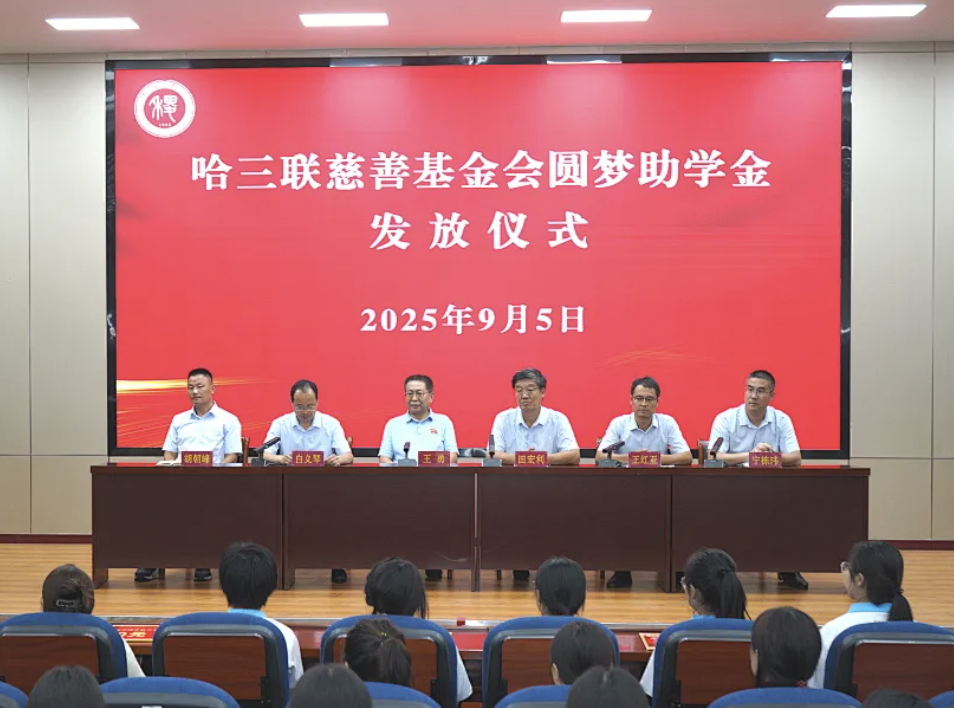9月5日,哈三聯(lián)慈善基金會2025年度“圓夢助學(xué)金”發(fā)放儀式在稷山中學(xué)舉行。哈三聯(lián)慈善基金會理事王勇,稷山中學(xué)黨支部書記、校長田宏利,副校長王紅亞、胡朝峰、寧棟瑋參加圓夢助學(xué)金發(fā)放儀式,會議由專職副書記白義琴主持。